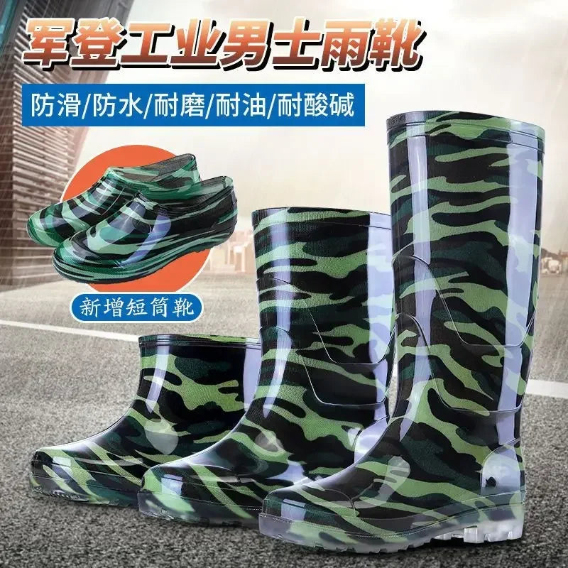 Camo Rubber Boots Men Anti Slip High Water Shoes Kitchen Waterproof Rubber Shoes Work Rain Boots for Fishing 2024